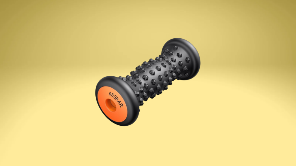 The black BESKAR foot roller offers an incredibly simple, highly effective manual solution for instant athletic recovery safely. This portable wooden device avoids complex electronics entirely, relying solely on your own physical body weight safely. You simply roll your sore arch over the textured surface to physically break down thick, rigid scar tissue naturally. Consequently, you maintain absolute control over the exact mechanical pressure applied to your sensitive fascia safely.