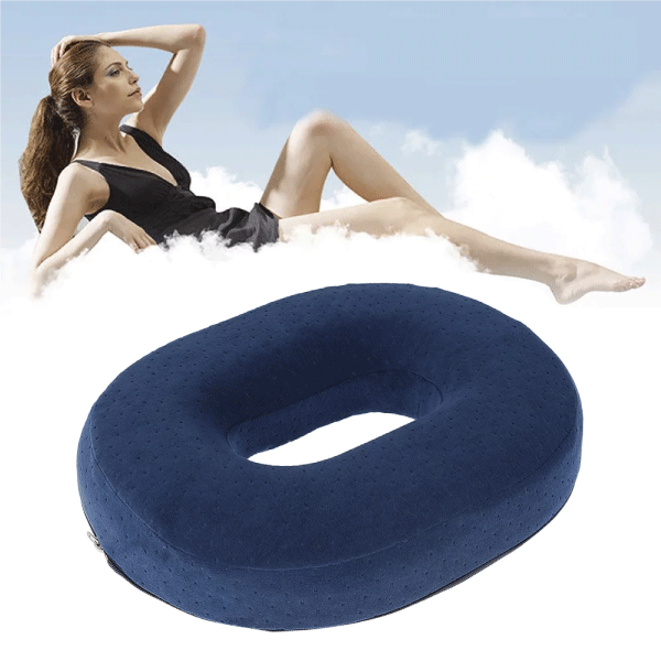 A donut pillow, as the name suggests, is a pillow in the shape of a donut with a hole in the center. A donut pillow is a foam cushion or an inflatable tube cushion with a hole in the middle and helps with tailbone pain, sore pain, and hemorrhoid pain.